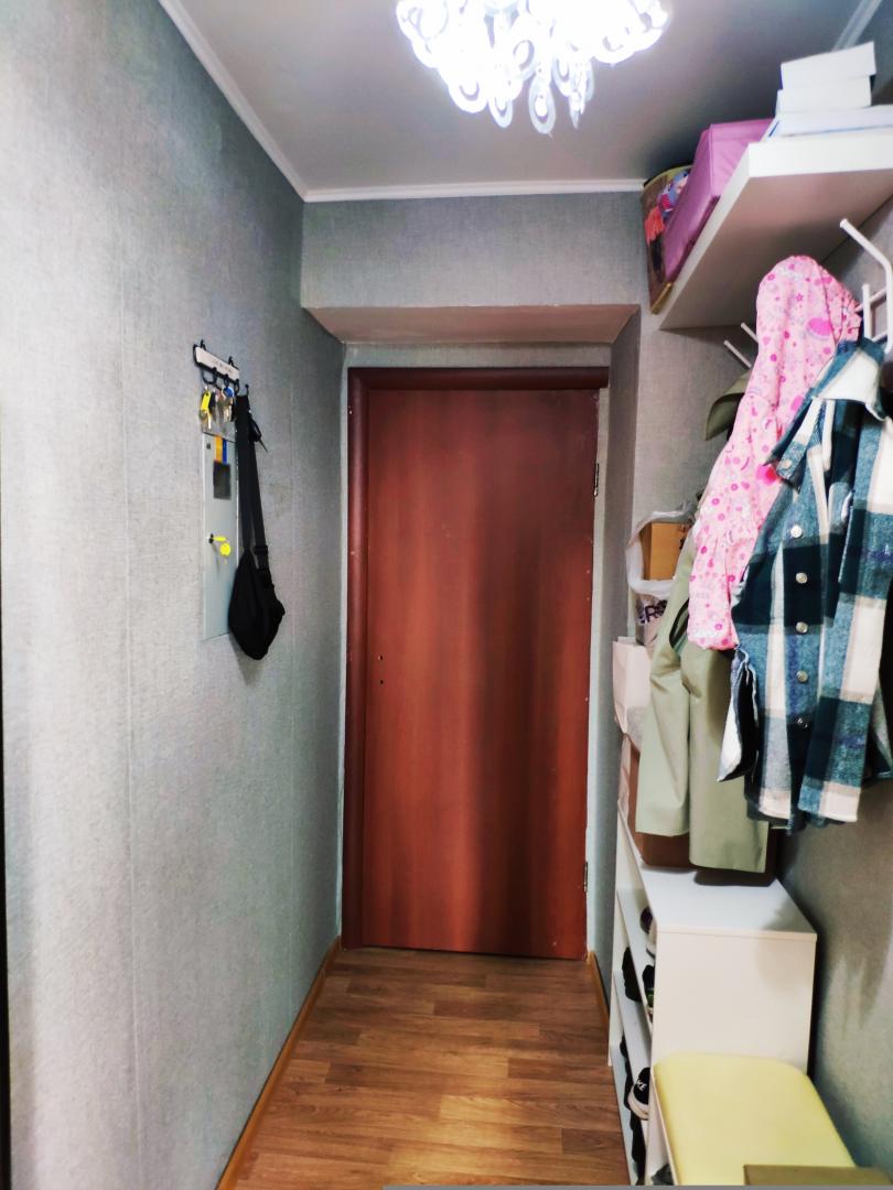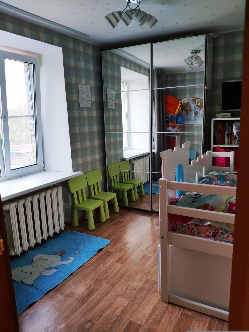 В кв. отличные решения по хранению:в зале огромный до потолка шкаф купе,в другой комнате также шкаф купе.