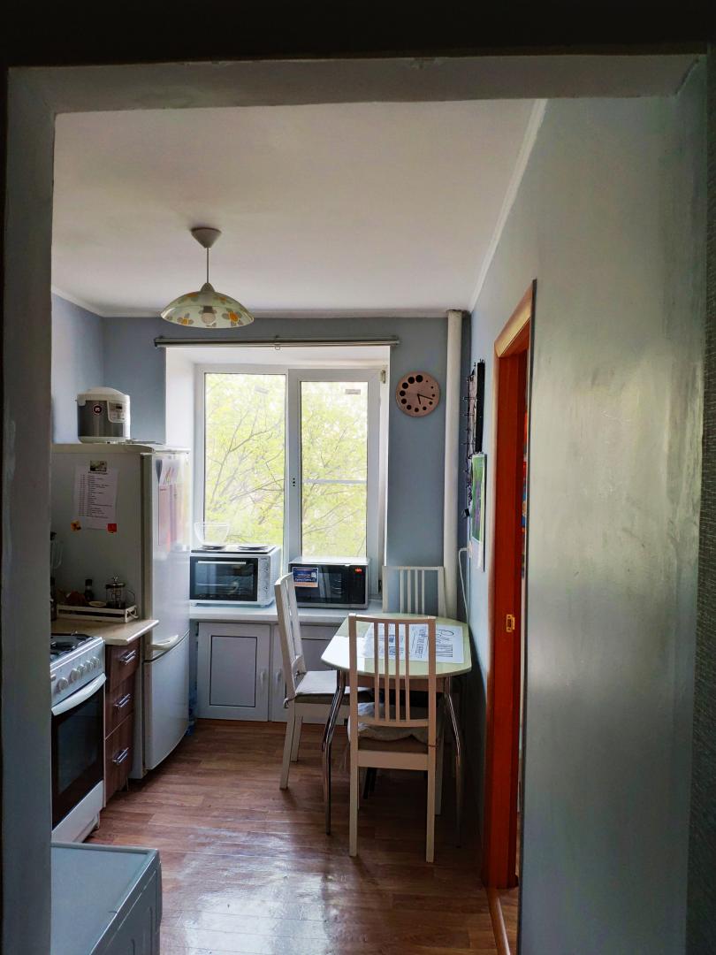 Просторная кухня отлично вписывается в интерьер, создавая атмосферу уюта и свободы, несмотря на небольшую квартиру в целом. Была студией, после ремонта решили разделить квартиру,создав изолированные комнаты.