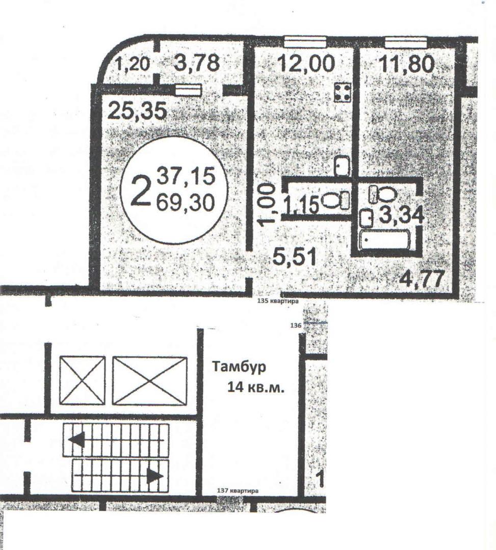 Комнаты: 25.35-11.8 м2