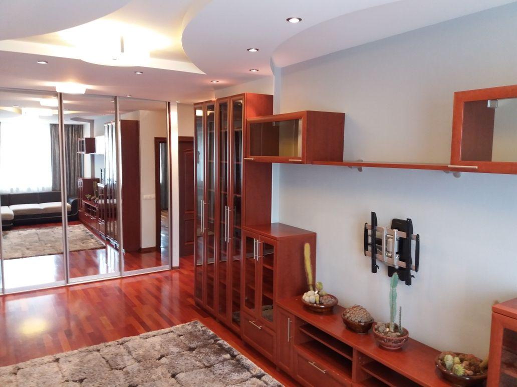 3-х ком. кв.83.6 (с лоджией-87.1) кв.м. с евроремонтом. Дом класса комфорт+ монол.-кирп. Комн. изол.24.0/16.8/14.6, кухня 11.9, лодж. 3.5 застек. и утепл., роль-шторы. Потолки 2.8 м. Окна: одно на восток и три на запад (двор). Кв. на элитном 7 этаже в середине дома, секция дома, в которой всего 13 эт., в подъезде меньше квартир. Теплые полы на кухне, в с/у и на лодж. Во всех комн. и на кухне устан. япон. инверторные (обогрев и охлажд.) кондиц. Fujitsu. В каждой комн. встроен. шкафы-купе, натур. паркет. доска, обои под покраску (моющ.), двухуровневое освещ. Все двери дер. массив с итал. фурнитурой. На кухне встроен. кух. мебель с имп. быт. техн. (вароч. панель комбин.(2 конф.электро и 2 индукцион.) и духовка Bosch, посудомоеч. машина Siemens, вытяжка Cata, фильтры для питьевой воды), мойка интегрированная со столешницей (каменная). Везде итал. керам. плитка, имп. сантех., ванна чугунная Jacob Delafon. Водяные полотенцесушители, системы защиты от протечек, фильтры для воды с автомат. промывкой Honeywell, магнитные фильтры, водонагрев. (OSO на 100 л). Разводка TV, интерн., телеф. во всех помещ. Электро автоматы на каждый контур. Есть видео-домофон, метал. дверь. Обустроена большая кладовая для хранения вещей. Остается мебель и бытовая техника.