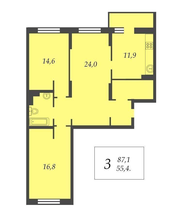 Комнаты: 24,0-16,8-14,6 м2